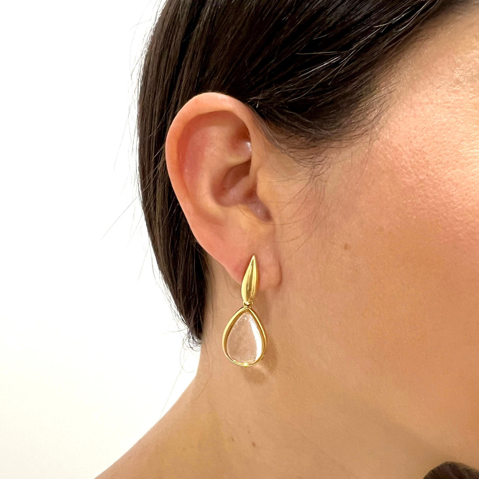 O Brinco em Cristal de Rocha traz elegância atemporal com seu design sofisticado e minimalista. A pedra natural, conhecida pelo brilho translúcido, ganha destaque em uma moldura dourada delicada, criando um acessório versátil e refinado. Ideal para compor looks clássicos e sofisticados em qualquer ocasião.